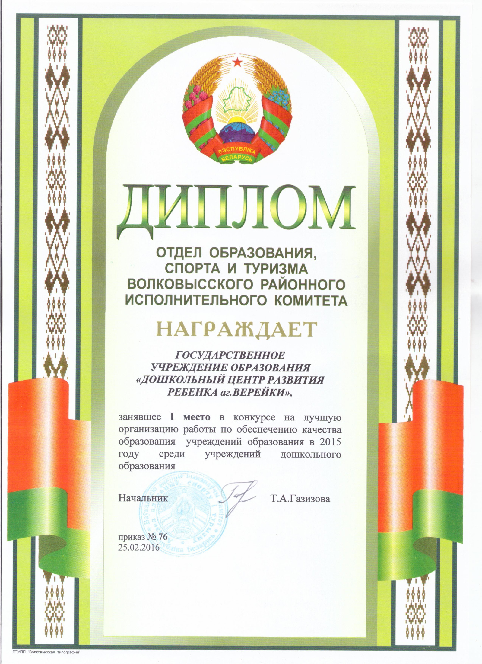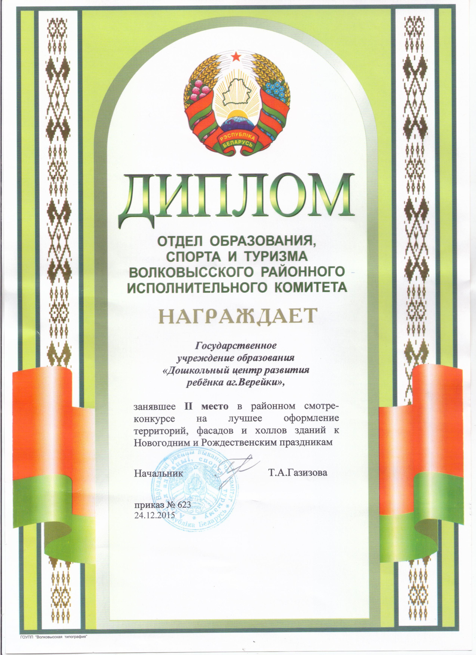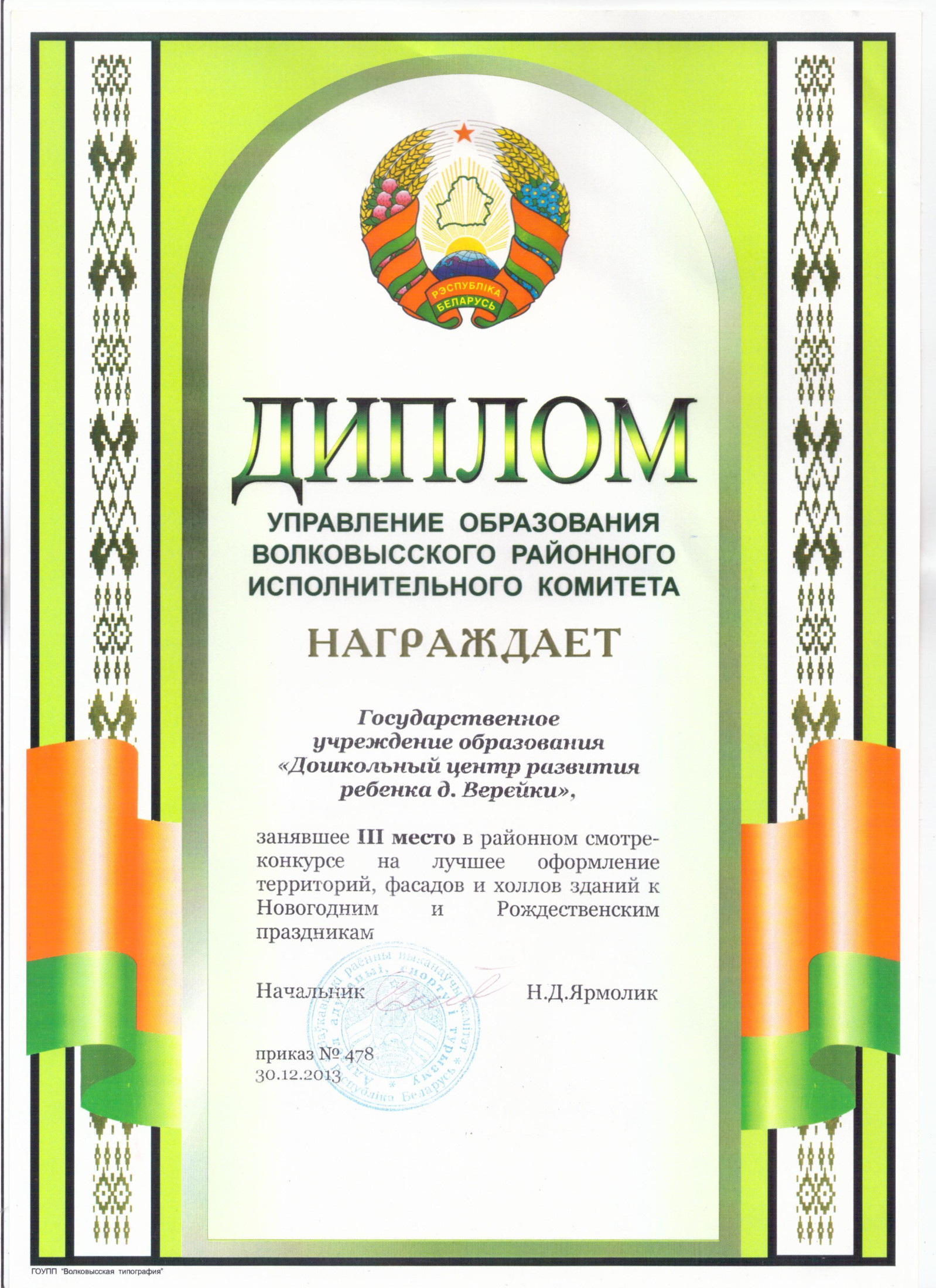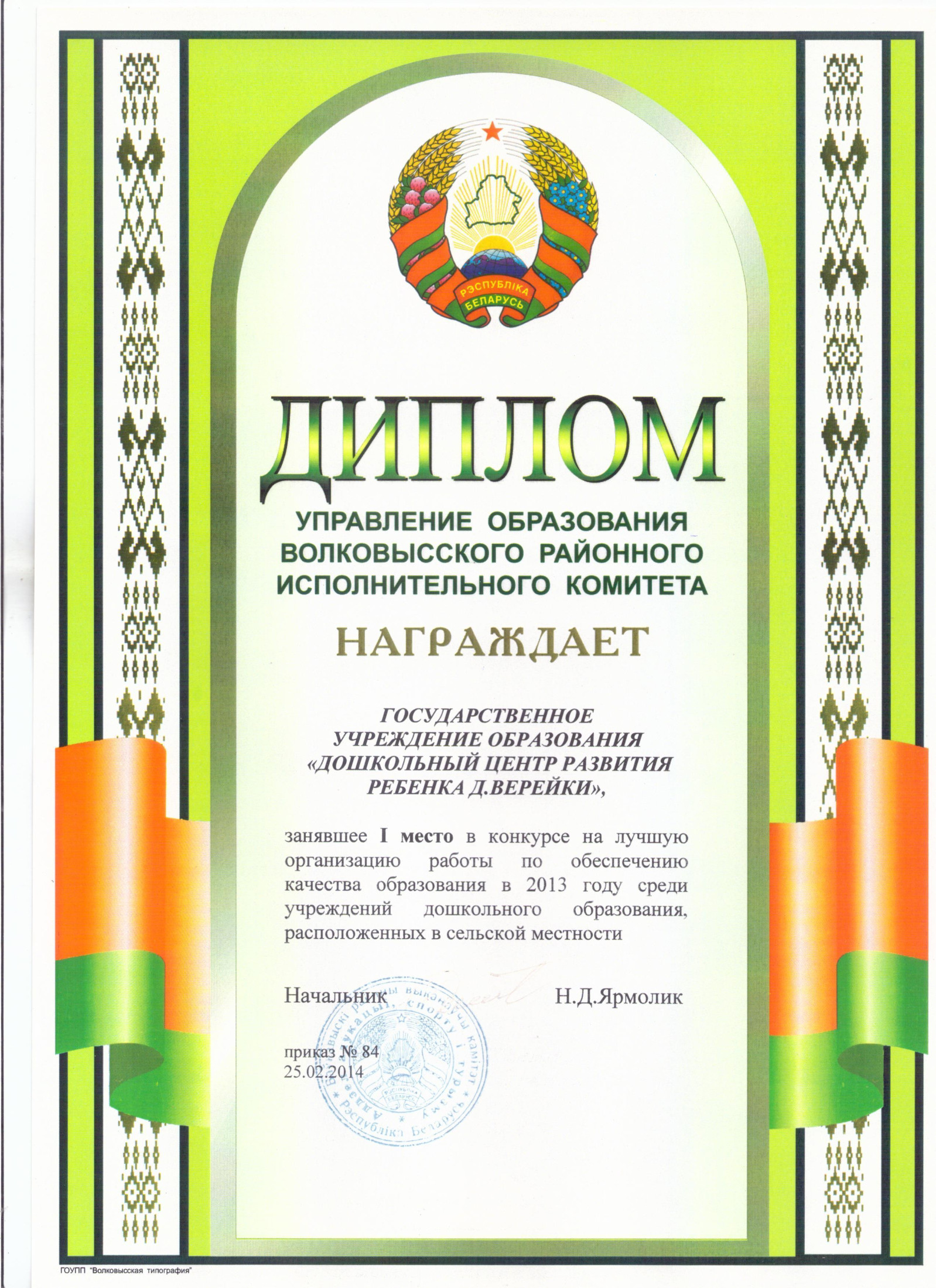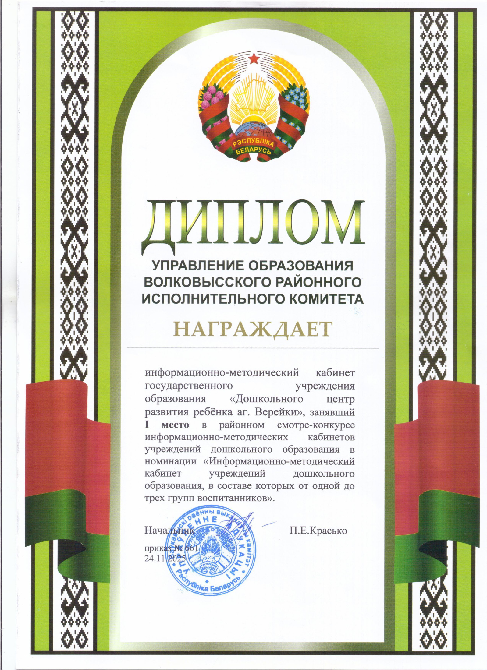 24 сентября 2024 г. в Единый государственный регистр юридических лиц и индивидуальных предпринимателей внесена запись о государственной регистрации государственного учреждения образования "Дошкольный центр развития ребенка аг.Верейки".